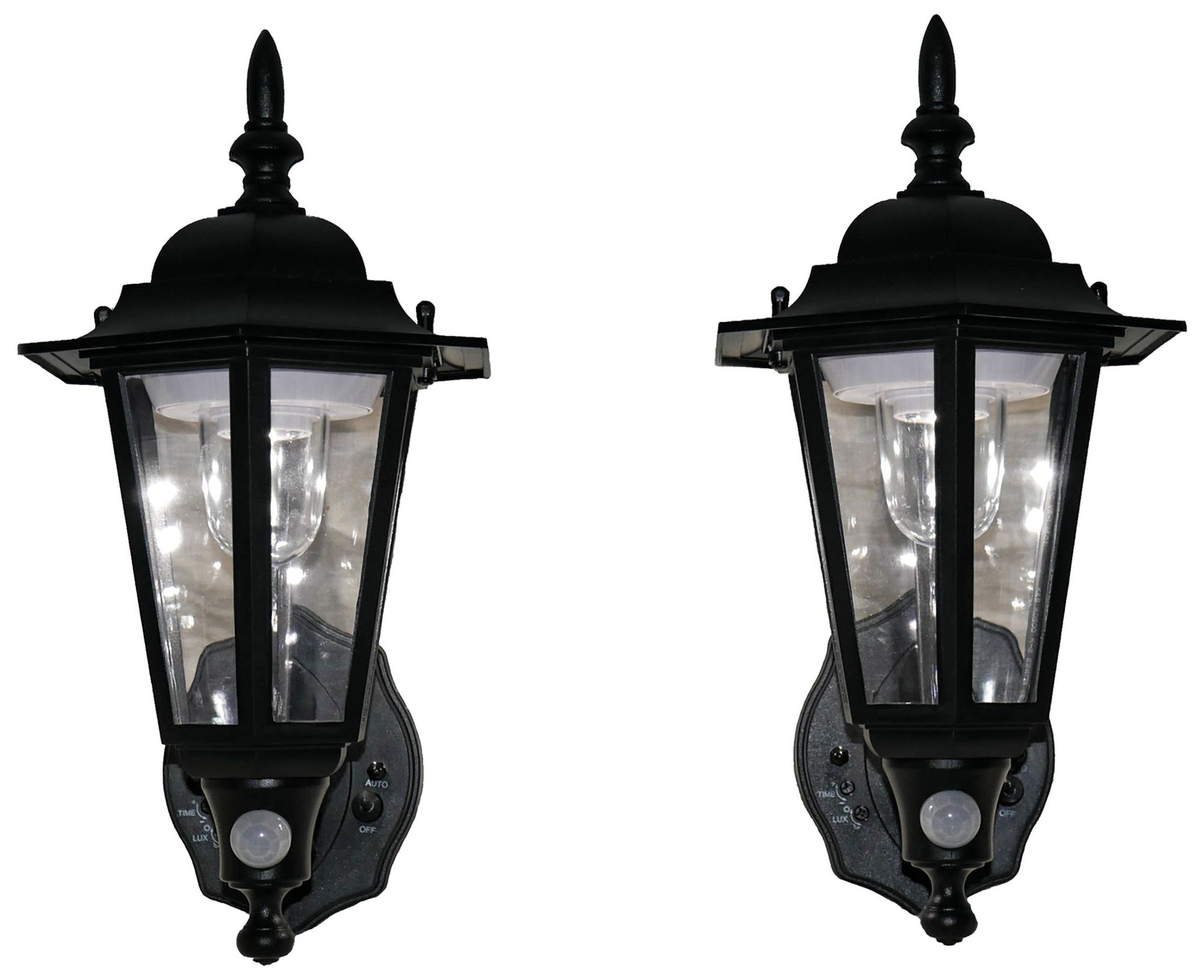 Black 1 light wall lantern with motion detector.