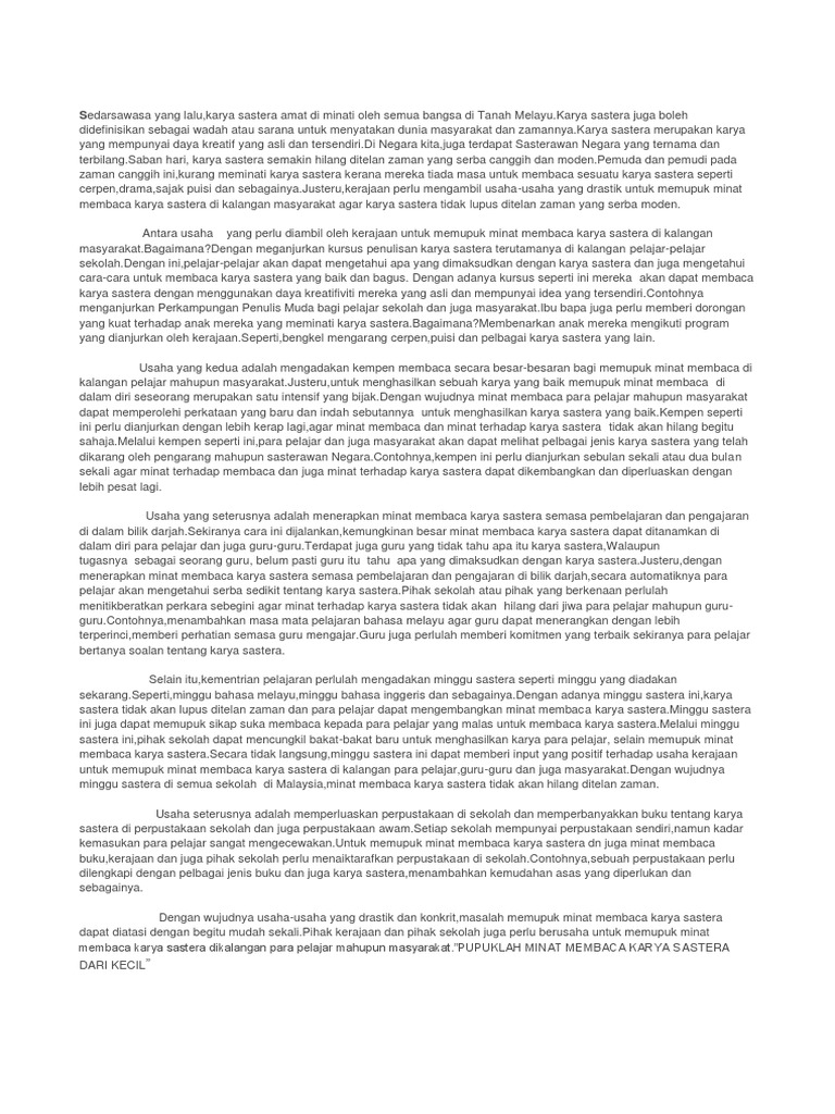 Bm100 Docx Langkah Langkah Untuk Menarik Minat Pelajar Meminati Karya Sastera 1 Kerajaan Haruslah Mengadakan Kempen Atau Ceramah Yang Berkaitan Dengan Course Hero from www.coursehero.com Maybe you would like to learn more about one of these? Check spelling or type a new query. Usaha usaha memupuk minat membaca karya sastera. We did not find results for: